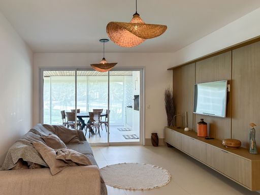 - Possui 208,76m² de área útil - 05 dormitórios, sendo 04 suítes - Sala para 02 ambientes - Cozinha americana completa - Lavabo - Área de serviço - Ambientes climatizados - Área gourmet com churrasqueira integrada com a cozinha americana - Vista mar panorâmica - Pé na areia - 03 vagas de garagem