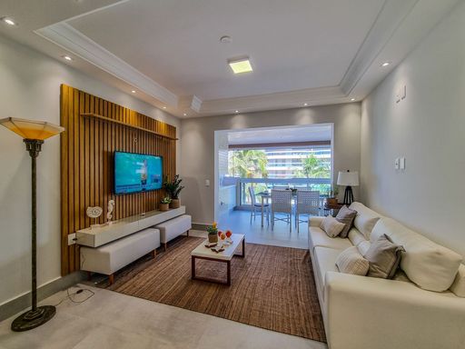 - Possui 101m² de área útil - 03 dormitórios, sendo 01 suite - Sala para 02 ambientes - Cozinha americana completa - WC social - Ambientes climatizados - Área de serviço - Varanda gourmet com fechamento em vidro - 02 vagas de garagem - Vista mar
