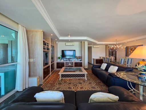- 350,82m² de área útil - 04 suítes - Sala para 03 ambientes - Sala de TV - Cozinha tradicional - Lavanderia - Lavabo - Varanda gourmet - Ambientes climatizados - Frente mar - 04 vagas de garagem - Serviço de praia - 01 suíte dependência Lazer do condomínio: - Varanda gourmet - Churrasqueira - Piscina - Playground - Sauna - Quadra de tênis