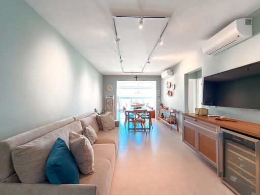 - 147,05m² de área útil - 03 suítes completas climatizadas - Dormitório de serviço com reversível - WC social - Sala para 02 ambientes integradas climatizada - Varanda gourmet - cozinha e jantar integrados com fechamento em vidro e climatizados - Área de serviço - Despesa na área de serviço - WC serviço - 02 vagas de garagem - Todos ambientes e dormitórios climatizados Diferenciais: - Sol da manhã - Ambientes integrados e climatizados - Vista mar frontal 100% - 100% reformado mobiliado e decorado Lazer do condomínio: - Brinquedoteca - Playground - Espaço gourmet - Sauna - Salão de jogos - Fitness - Piscina aquecida - Quadra de tênis