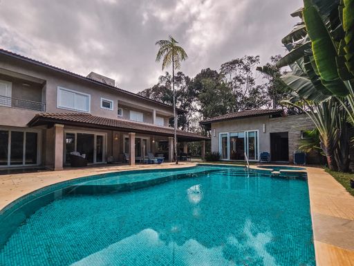 - Área Útil 379,45m² - Área Total 525m² - 05 dormitórios suítes 04 suítes - 08 vagas de garagem Pavimento térreo - Sala de TV integrada com cozinha - Cozinha completa, ampla, num formato moderno, aberto - Sala de jantar integrada com sala de estar e living - Sala de TV reservada - Lavabo Área externa - Piscina integrada com sauna - Hidromassagem - Praça de fogo - Área gourmet coberta - Churrasqueira - Chopeira - Mini adega - Banheiro externo Pavimento superior - 05 dormitórios, sendo 04 suítes - Banheiro auxiliar - Mini bar - 03 dormitórios com varanda integrada | vista para a mata - 02 dormitórios com varanda privativa (vista para rua) Diferenciais - Casa moderna - Decoração completa - Ambientes climatizados Descubra o máximo do conforto e luxo com esta propriedade, oferecendo 379,45m² de área útil e 525m² de área total. Com 05 dormitórios, sendo 04 suítes, e 08 vagas de garagem, este é o espaço perfeito para quem busca amplitude e sofisticação. No pavimento térreo, desfrute de uma sala de TV integrada com uma cozinha completa e ampla, num formato moderno e aberto. A sala de jantar integrada com a sala de estar e o living cria um ambiente perfeito para recepções. Há também uma sala de TV reservada e um lavabo para maior comodidade. A área externa é um verdadeiro oásis com piscina integrada com sauna, hidromassagem, praça de fogo, área gourmet coberta com churrasqueira, chopeira, mini adega e banheiro externo. Perfeito para momentos de lazer e confraternização. No pavimento superior, encontram-se 05 dormitórios, sendo 04 suítes, um banheiro auxiliar e um mini bar. Três dormitórios têm varandas integradas com vista para a mata, enquanto dois dormitórios possuem varandas privativas com vista para a rua. Diferenciais como a decoração completa, os ambientes climatizados e o design moderno fazem desta propriedade uma escolha única para quem busca conforto e sofisticação. Agende já a sua visita e venha conhecer seu novo lar!