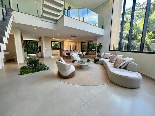 - 455,93m² de área construída - 02 pavimentos - Totalmente mobiliado, climatizado, equipado e decorado - Sistema de automação completo - 06 suítes, sendo 01 master com closet e banheira de imersão - Living para 03 ambientes com pé direito duplo - Lavabo - Copa de apoio - Área de serviço com suíte multiuso - 04 vagas de garagem Área Externa: - Fundo para mata - Piscina aquecida com iluminação - Prainha - Sauna integrada - SPA - Solarium - Banheiro externo - Área gourmet completa integrada à cozinha Descubra a perfeita combinação de sofisticação e conforto com esta propriedade espetacular, oferecendo uma área útil de 455 m² distribuída em 2 pavimentos. Completamente mobiliado, climatizado, equipado e decorado, o imóvel dispõe de um sistema de automação completo, garantindo conveniência e modernidade. Este imóvel possui 6 suítes, sendo 1 master com closet e banheira de imersão, proporcionando um refúgio de luxo e tranquilidade. O living para 3 ambientes com pé direito duplo é um espaço imponente e acolhedor. A copa de apoio e a área de serviço com suíte multiuso acrescentam praticidade ao dia a dia, enquanto o lavabo oferece um toque de elegância. A área externa é um verdadeiro oásis, com fundo para a mata, piscina aquecida com iluminação, prainha, sauna integrada, SPA, solarium e banheiro externo. A área gourmet completa, integrada à cozinha, é ideal para receber amigos e familiares em momentos especiais. Além disso, o imóvel conta com 4 vagas de garagem. Venha conhecer e se encantar com cada detalhe desta magnífica residência. Agende uma visita e descubra um novo conceito de viver bem!