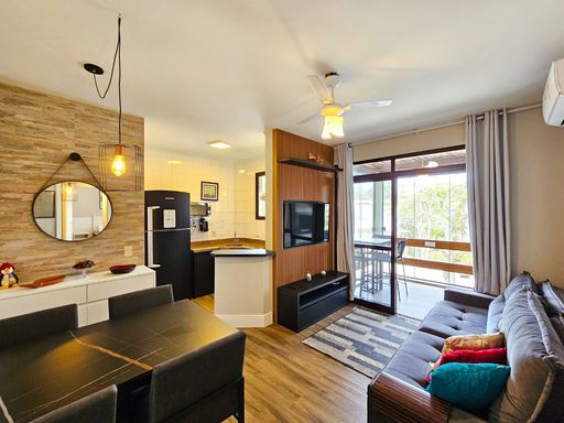 - 72m² de área construída - 02 dormitórios, sendo 01 suíte - 01 vaga de garagem - Lavabo - Sala para 02 ambientes - Cozinha americana - Ambientes climatizados - Piscina - Área verde