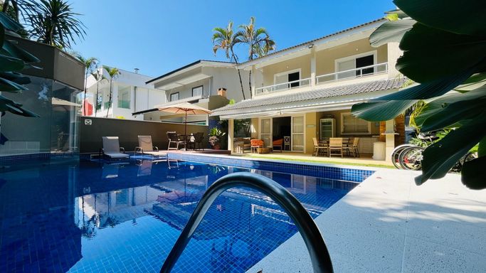 - 430m² área construída - 05 Dormitórios sendo 04 suítes - 06 ambientes de estar - Piscina com cascata - Área gourmet - 04 vagas de garagem - Sala com mesa de jogos
