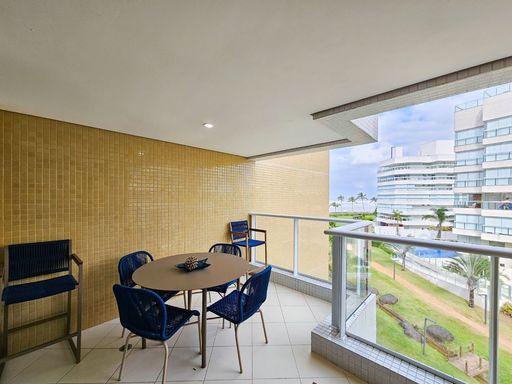 - Possui 123,80m² de área útil - 03 dormitórios, sendo 01 suite - Sala para 02 ambientes - Cozinha americana completa - WC social - Área de serviço - Varanda gourmet climatizada com fechamento em vidro e persianas - 02 vagas de garagem - Ámbientes climatizados - Apartamento pé na areia
