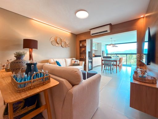 - 131m² de área útil - 03 dormitórios, sendo 01 suíte - Sala para 02 ambientes - WC social - 02 vagas de garagem - Varanda Lazer do condomínio: - Varanda gourmet - Churrasqueira - Piscina - Playground - Sauna A poucos metros da praia e cercado por muito verde, este apartamento é um convite perfeito para viver momentos especiais. Com 131 m² de área útil, o espaço foi planejado para quem valoriza conforto e bem-estar. O living amplo integra-se à varanda gourmet com churrasqueira, onde o som do mar e o clima da Riviera tornam cada refeição ainda mais agradável. São 3 dormitórios, sendo 1 suíte, todos com excelente iluminação natural e uma atmosfera acolhedora. A cozinha americana se conecta de forma prática ao living e à área de serviço com banheiro, trazendo mais funcionalidade ao dia a dia. O condomínio oferece uma área de lazer completa, perfeita para momentos de descanso, diversão e conexão com a natureza.