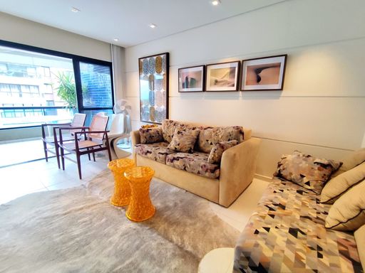 - 220m² área útil - 04 suítes - Dormitório e banheiro de serviço - Mobiliado - Living para 03 ambientes - Sala integrada com varanda - Varanda gourmet com fechamento em vidro - Cozinha planejada - 03 vagas de garagem - Deposito individual Diferenciais: - Pé na areia e frontal ao mar - Iluminação moderna - Ar condicionado em todos os ambientes