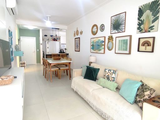 - 80m²de área útil - 02 dormitórios, sendo 01 suíte - Sala para 02 ambientes - WC social - Ambientes climarizados - Excelente área de lazer - Acesso fácil a duas praias - 02 vagas de garagem