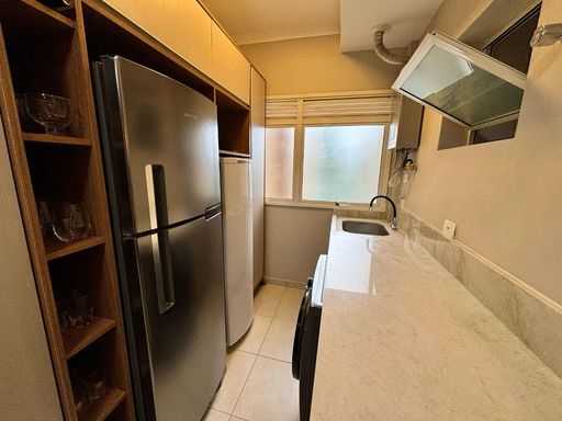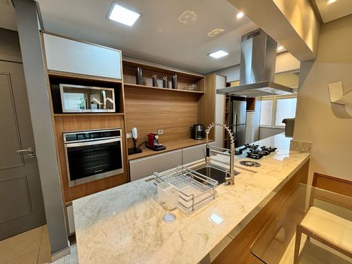 Este apartamento possui 89,68m² de área útil, com 03 dormitórios, sendo 01 suíte. A cozinha americana completa e o WC de serviço garantem praticidade e conforto. Com 02 vagas de garagem, você terá espaço para estacionar com segurança.