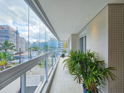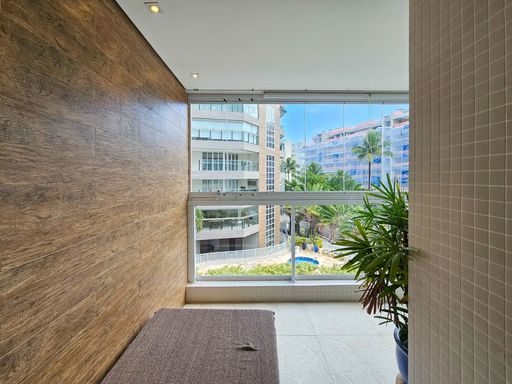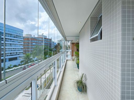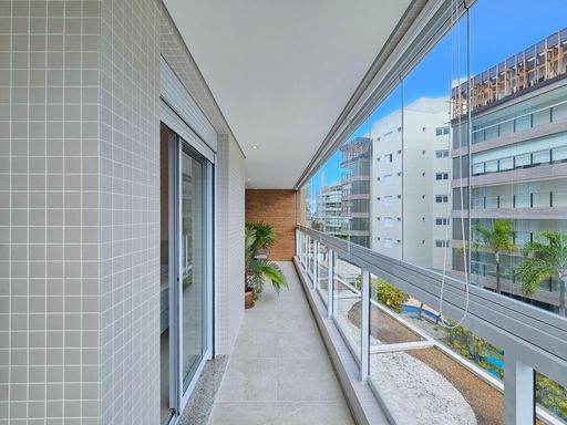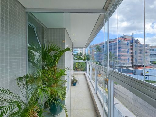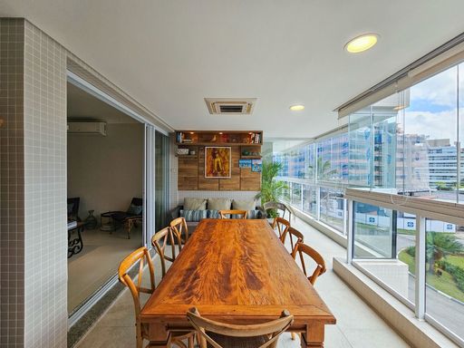 - Varanda com fechamento em vidro, persianas e ar condicionado