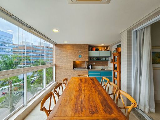 A varanda gourmet com churrasqueira é ideal para receber amigos e familiares, sendo equipada com fechamento em vidro, persianas e ar condicionado. E para quem gosta de estar em contato com a natureza, o "pé na grama" proporciona aquele toque especial de tranquilidade.