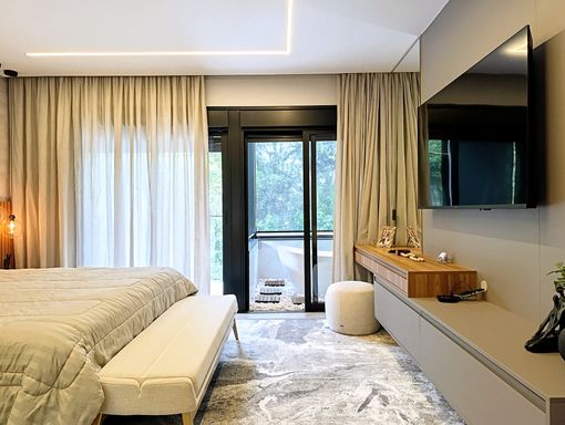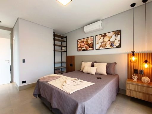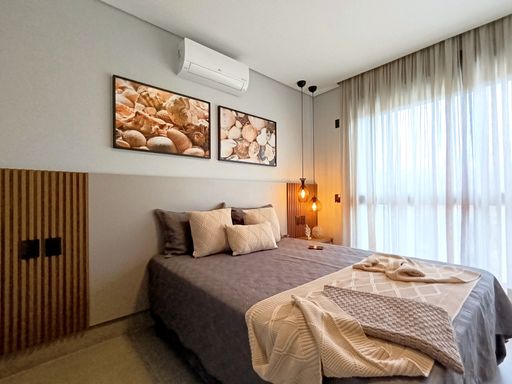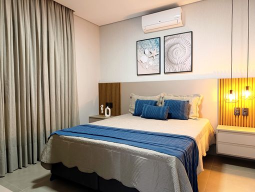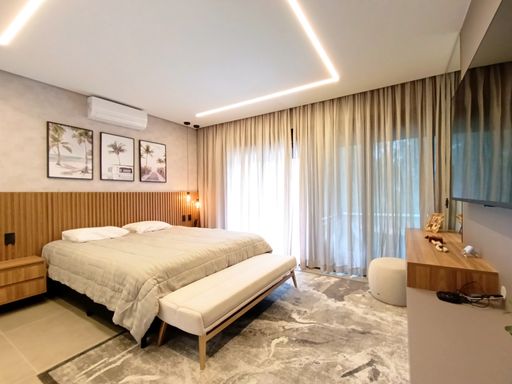 - 04 suítes decoradas e climatizadas, sendo 01 master com banheira