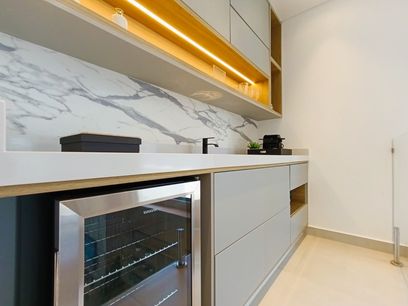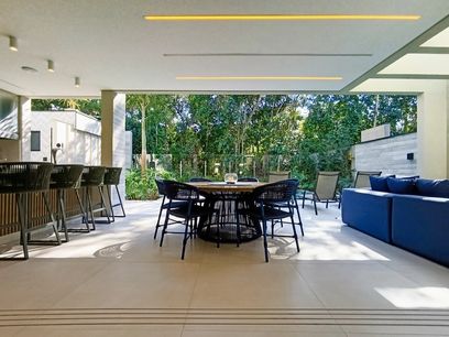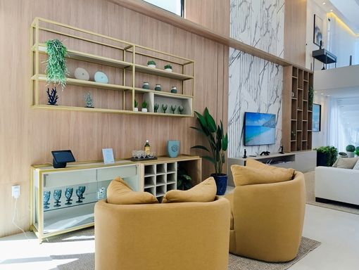 - Terraço gourmet com churrasqueira e balcão/bar com cooktop e chopeira