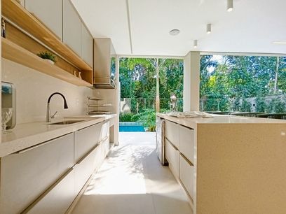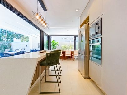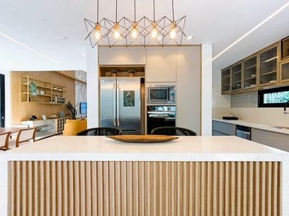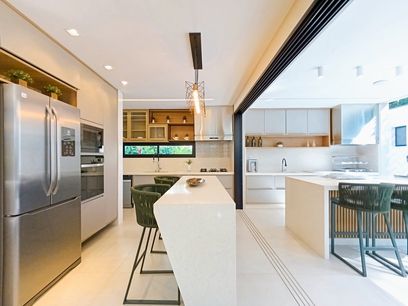 - Cozinha em conceito aberto com ilha