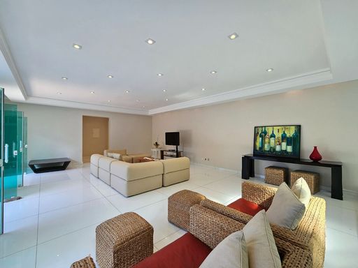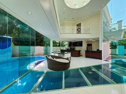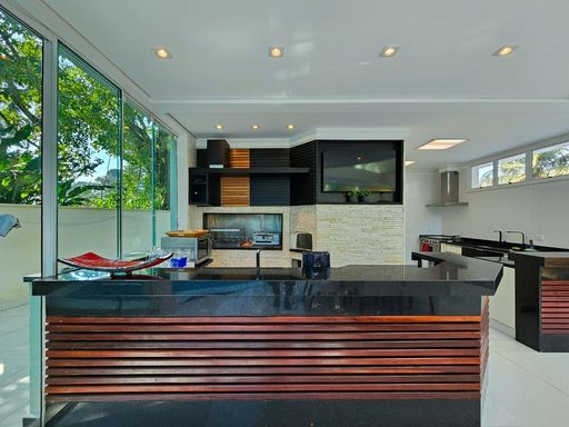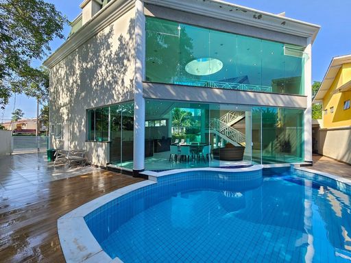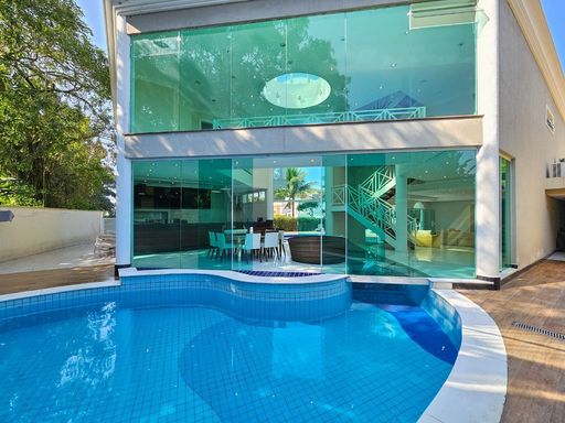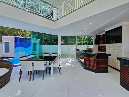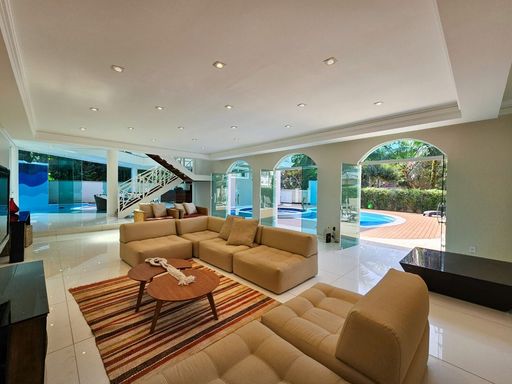 Mobiliada, 569,76 m² área construída, 3 pavimentos, living amplo e climatizado para 4 ambientes no térreo, junto com uma cozinha americana, lavabo, área de serviço, dormitório e WC de empregada, além de um depósito. No primeiro pavimento, 4 suítes espaçosas com armários embutidos e ar-condicionado, proporcionando máximo conforto e privacidade.