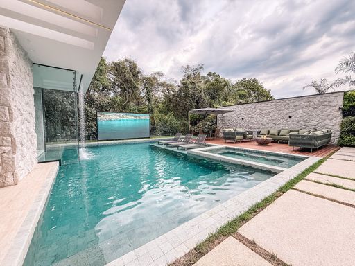 - Piscina com prainha e cascata