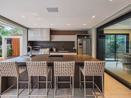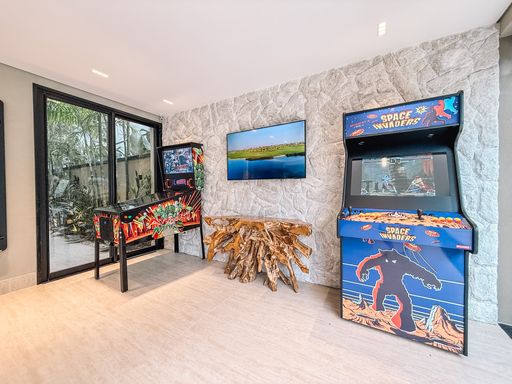 - Área gourmet integrada, cervejaria, máquina de gelo, churrasqueira a gás e carvão e chopeira