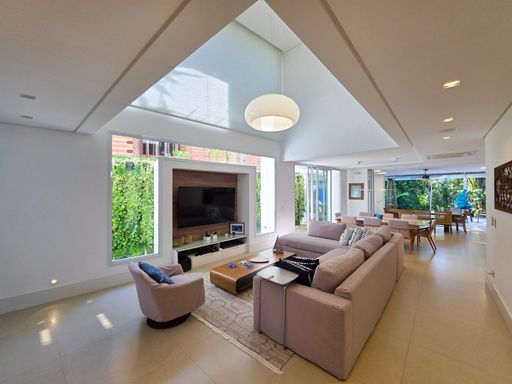 Com 400m² de área construída, esta propriedade proporciona conforto e elegância em cada detalhe. São 6 suítes, 4 vagas de garagem e ambientes integrados e climatizados, oferecendo um espaço harmonioso e funcional. A área de serviço prática e o espaço gourmet são ideais para momentos de lazer com a família e amigos.