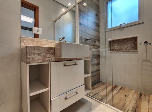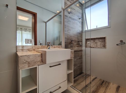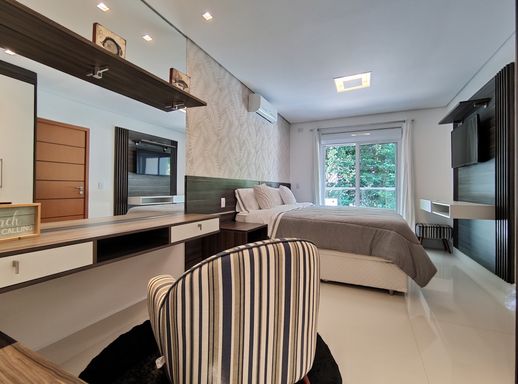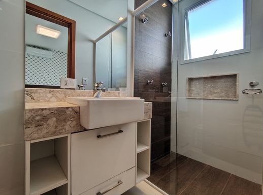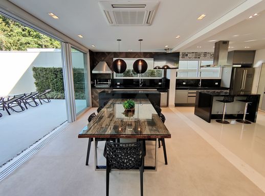 - Área gourmet climatizada com churrasqueira, cervejeira, TV