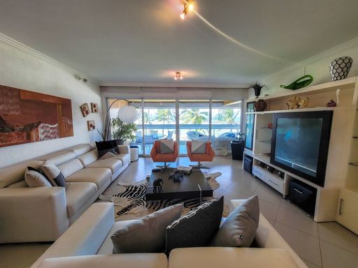 Os quatro dormitórios, sendo três suítes, garantem privacidade e conforto para todos os membros da família. A sala, com seus quatro ambientes integrados e climatizados, oferece vistas deslumbrantes para o mar, proporcionando um ambiente elegante e acolhedor para receber visitas ou simplesmente relaxar em família.