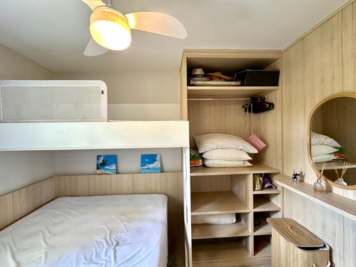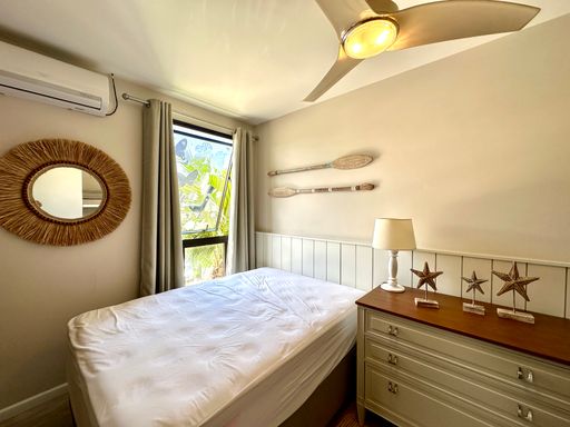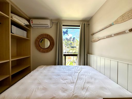 O espaço conta com dois dormitórios, ambos climatizados para o seu conforto, sendo um deles uma suíte completa. Além disso, há um banheiro social, garantindo privacidade e conveniência para os moradores e visitantes.
