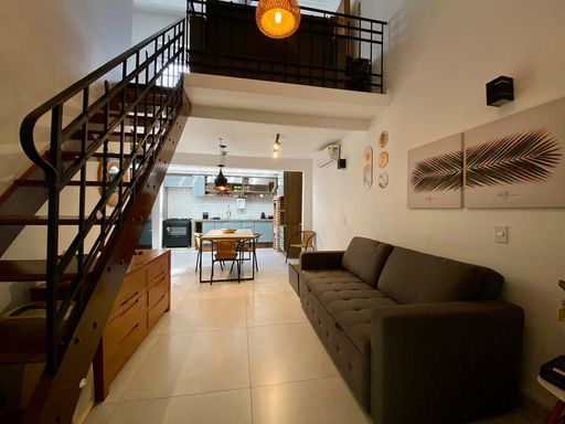 - 55,67m² de área construída - 01 dormitório - WC social - Cozinha americana - Ar condicionado - 01 vaga de garagem Lazer - Piscina - Sauna - Salão de jogos